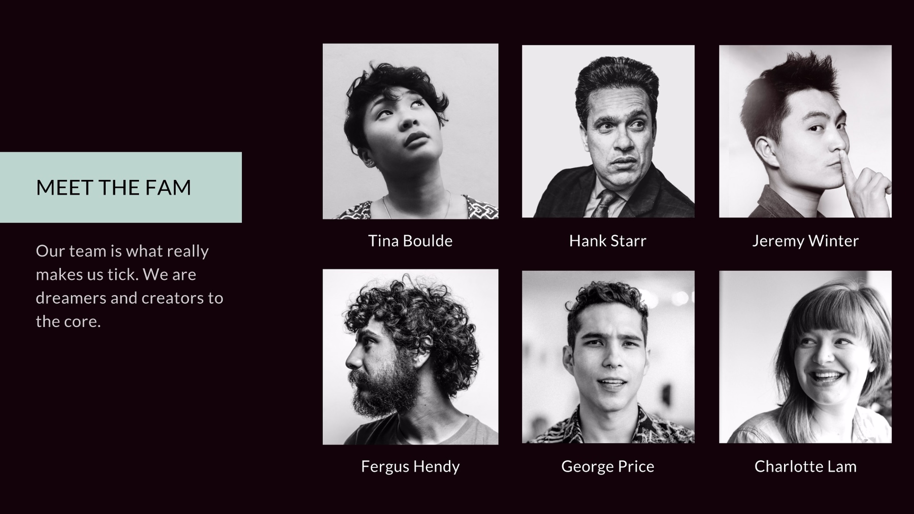 A team slide is a visual depiction of the members of your team. It should include photos, names, job titles, and can even include information about your team’s credentials or past experience. An effective team slide makes it simple for your audience to easily connect everyone involved with their role in the project.