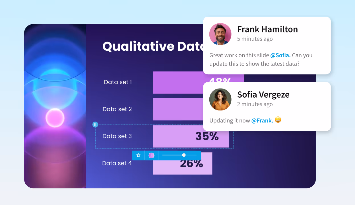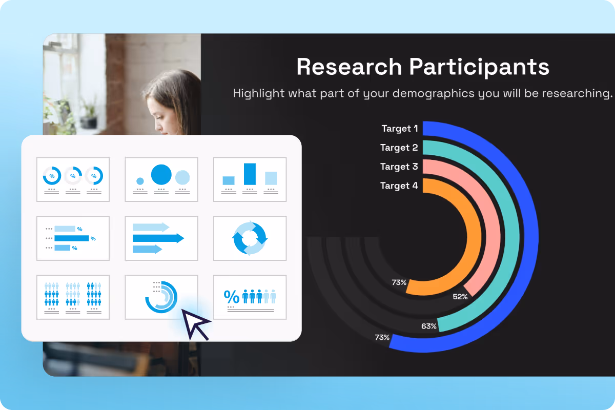 Whether you’re visualizing research data or summarizing a complex idea, Beautiful.ai helps you tell stories that connect. Smart Slides make it easy to turn numbers into narratives and dry content into engaging visuals that inspire.
