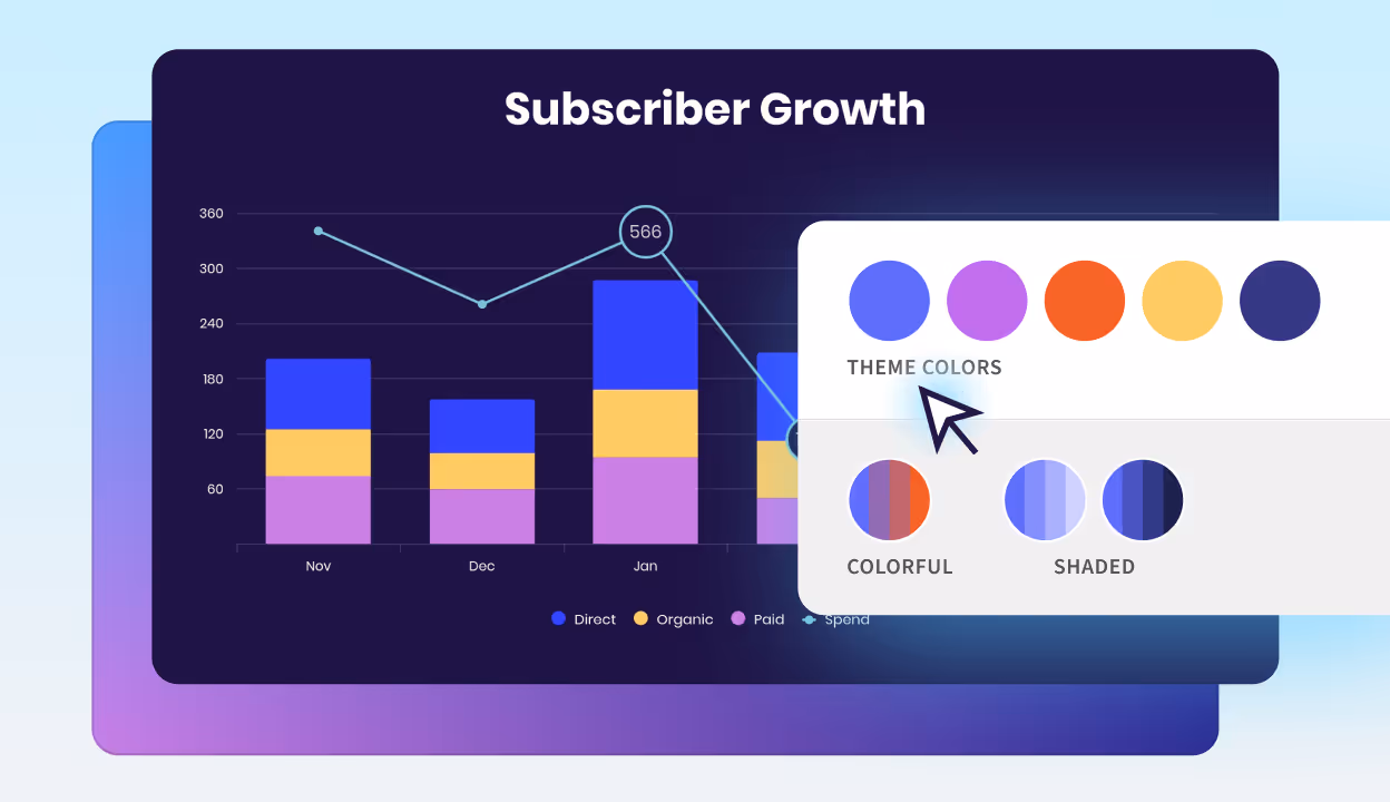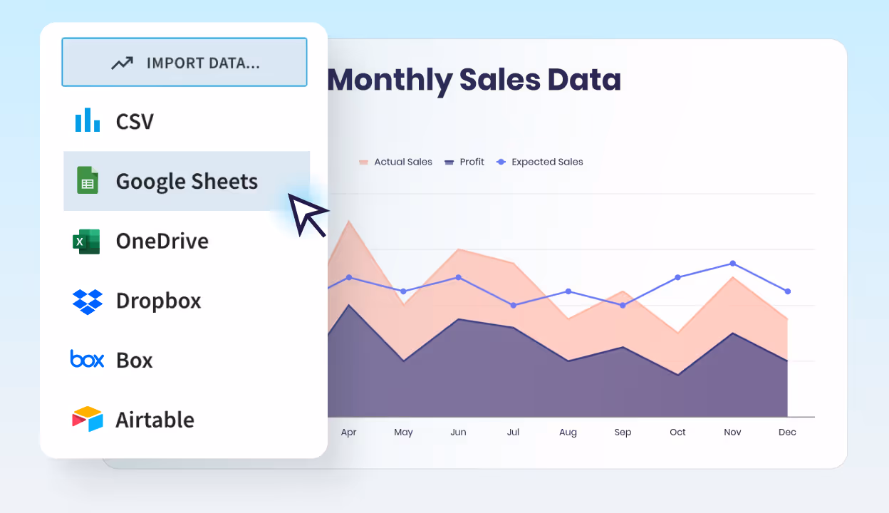 Instantly create animated charts and graphs. Link any spreadsheet for fast edits and live updates.